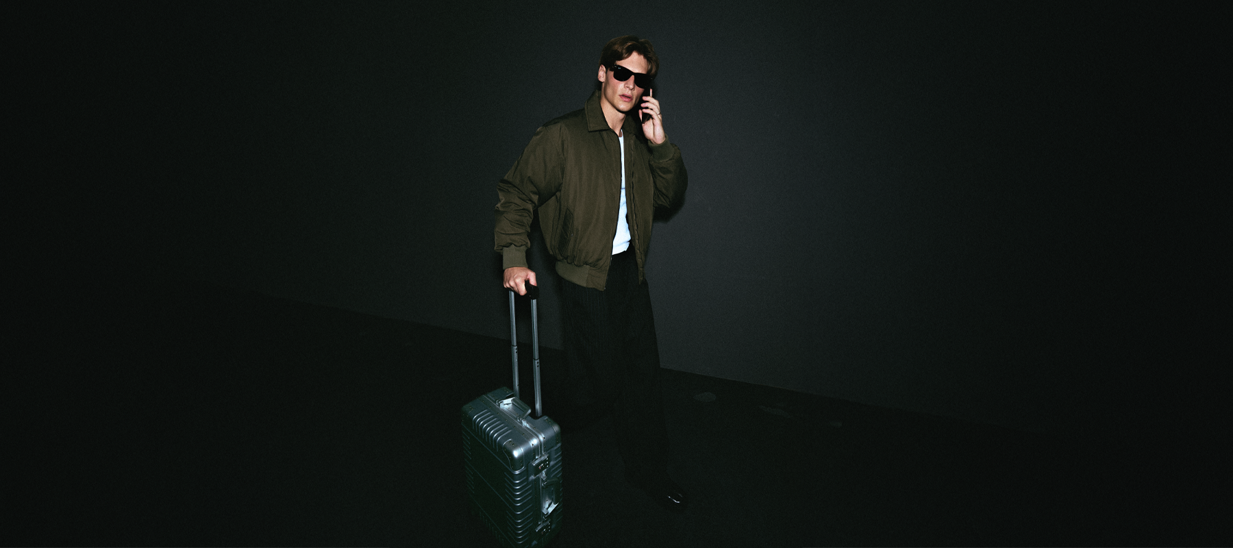 The campaign explores two worlds. The first — public life: shots reminiscent of ’90s American celebrity photos, captured by paparazzi at airports. Flashes, candid angles, the sense that the protagonist has just returned from a tour or literary trip. The second — private life: a living room interior featuring iconic 20th-century design — a Terrazza Sofa by De Sede, Arco lamp, concrete, leather, and metal. Here, the protagonist inhabits his own space, where objects and clothing act as extensions of his personality.